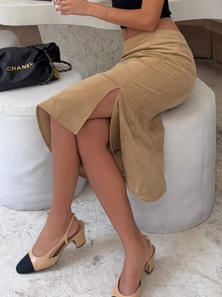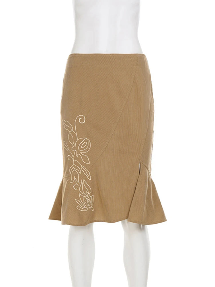 Trendix Women's Vintage Midi Skirt 2026 Summer High Waist Slim Ruffle Fishtail Skirts Party Side Slit Elegant Embroidery Skirt