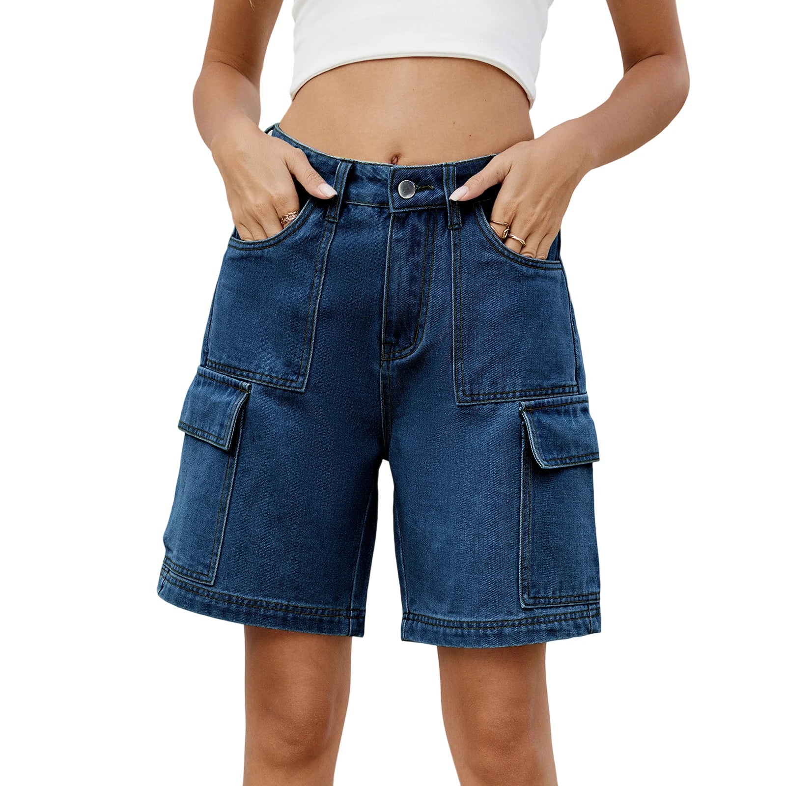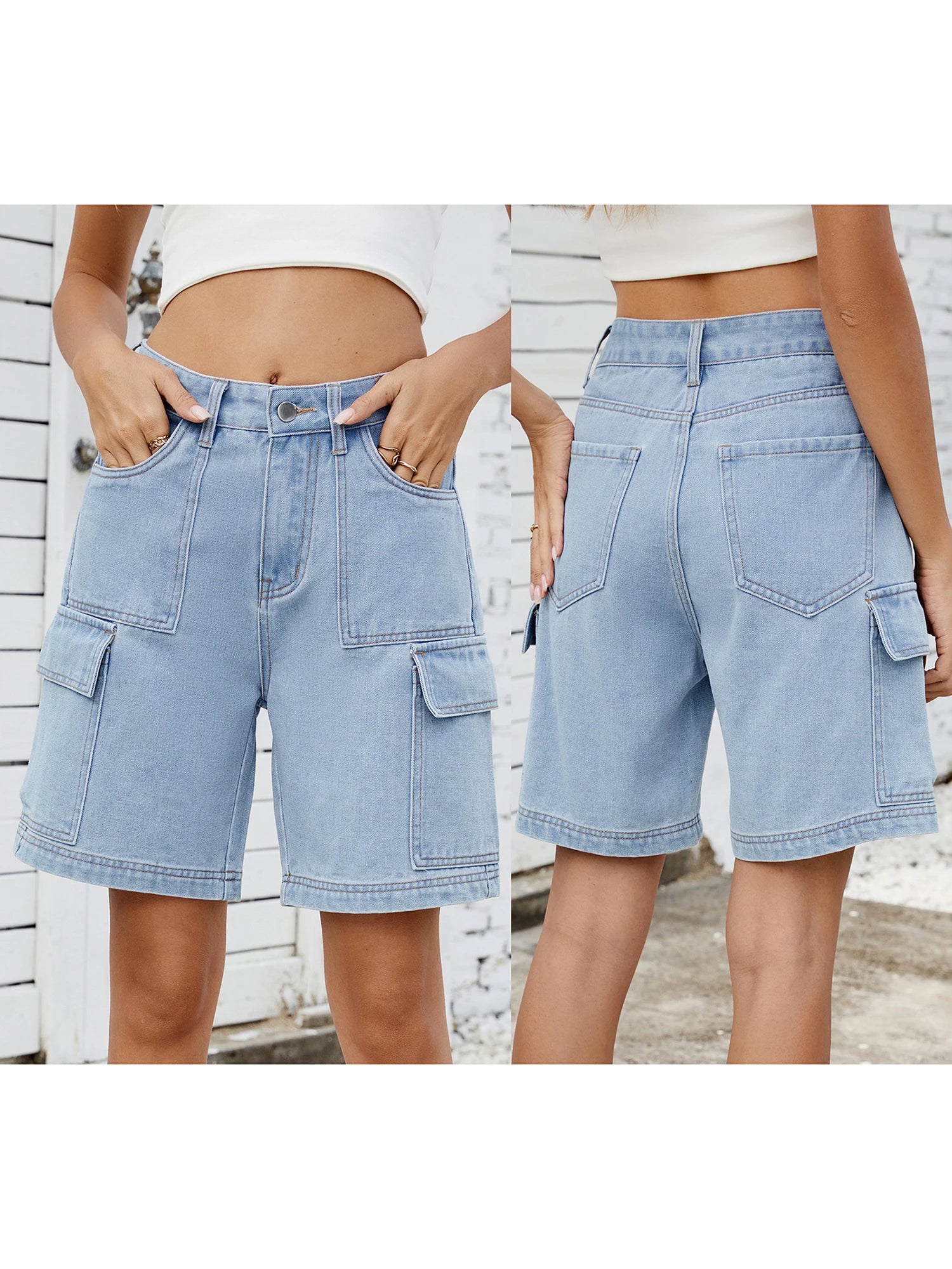 Women’s Summer Bermuda Denim Shorts Casual Mid Rise Straight Leg Knee Length Cargo Jean Shorts